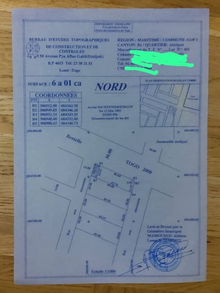 1 LOT DE TERRAIN À VENDRE – TOGO 2000